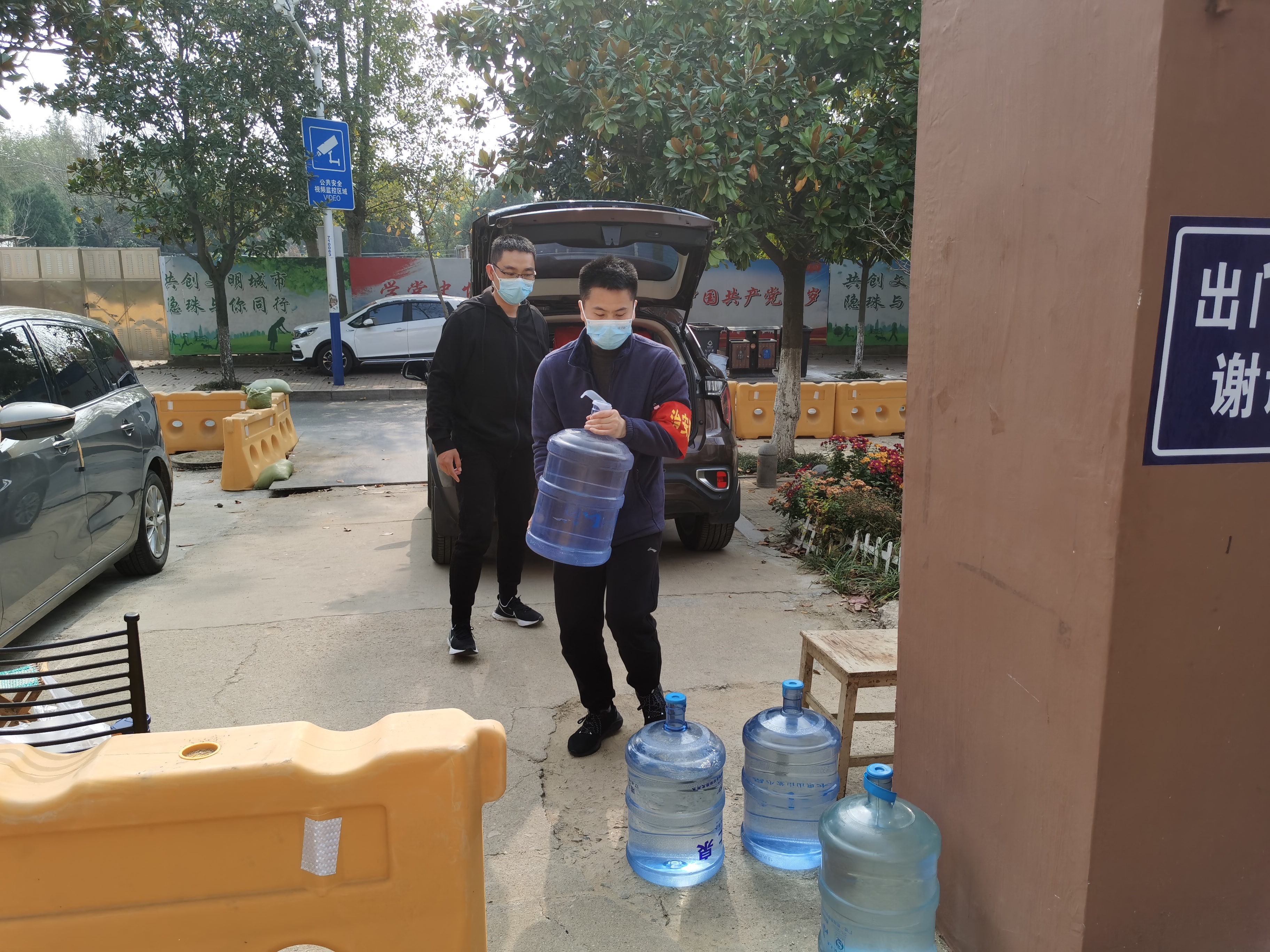 因小區(qū)管控,一些居民家中缺純凈水,志愿者們主動幫助他們?nèi)ス┧畽C打水,送到家去。“希望做到既有效于管理,又方便于居民。”韓偉說。