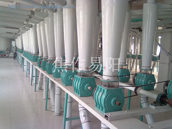 TGFY系列關風器1000T/D面粉廠效果圖,***升級關風機材料的材質,零部件全部采用消失模精密鑄造,一次鑄造成型,經長時間時效處理、拋丸清砂預處理,確保關風器品質、穩(wěn)定性及可靠性;關風器優(yōu)化結構后,提高了關風機整體強度,整體美觀大方;金易陽關風器雙出軸串聯式,采用滾子聯軸器聯接,簡化了整機結構,更適用于大型成套面粉機組使用。